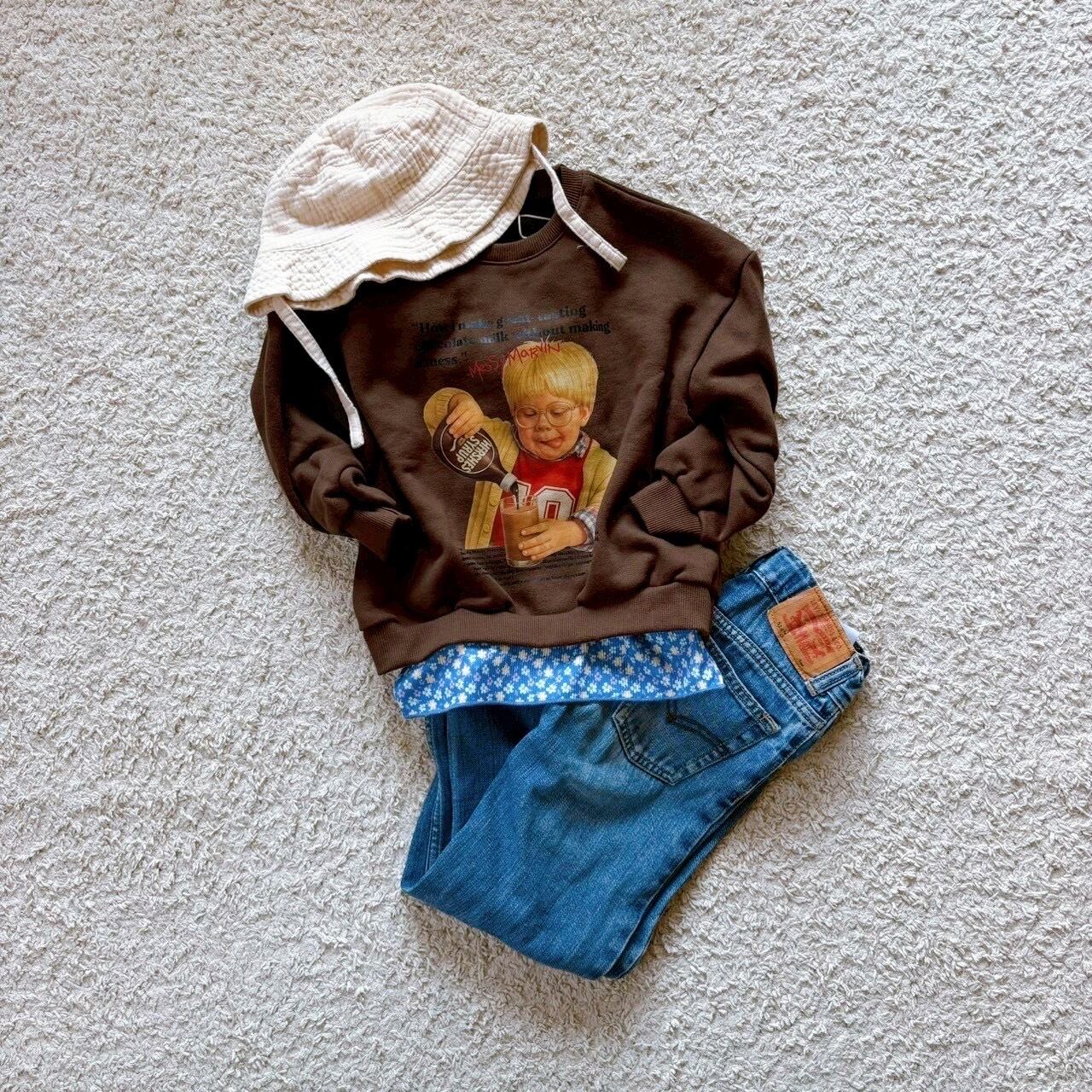 お茶目な男の子のプリントが可愛すぎる一着。
